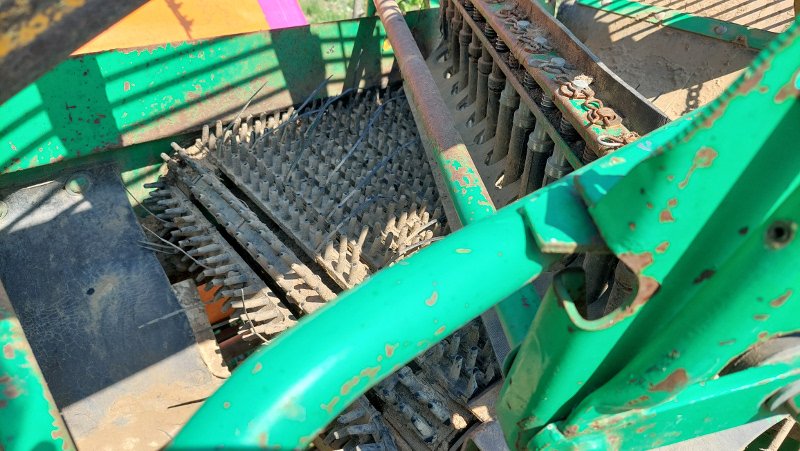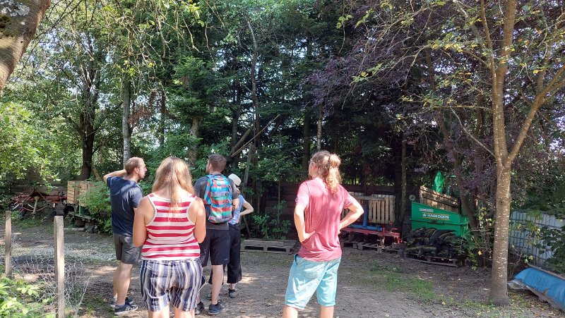 Die Ernte von Kartoffelsorten verschiedenster Größe kann zur technischen Herausforderung werden. Gerade die kleinen Sorten fallen durch die Förderbänder herkömmlicher Kartoffelroder. Einer der vielen Gründe, warum Jakob in Sachen Maschinen auf die älteren Semester schwört. In seinem Fuhrpark – von dem sich auch die Teilnehmer*innen des Spaziergang einen Eindruck machen konnten – sind Maschinen u.a. aus den 1970er Jahren zu finden. Denn gerade die alten Maschinen lassen sich baulich noch leichter an die Anforderungen, die Jakob an seine Ernte-, Anbau- und Pflegegeräte hat, anpassen. Zudem sind die kleine Größe und das dementsprechend leichtere Gewicht der älteren Maschinen für die Bewirtschaftung der kleinen Ackerflächen von Vorteil. Mit viel Geschick, Geduld und Ideenreichtum hat Jakob beispielsweise auf dem Betrieb drei Kartoffelroder so umgebaut, dass sie ihm bei der Ernte der verschieden großen Kartoffelsorten eine brauchbare Unterstützung sind.