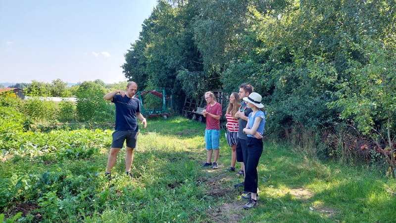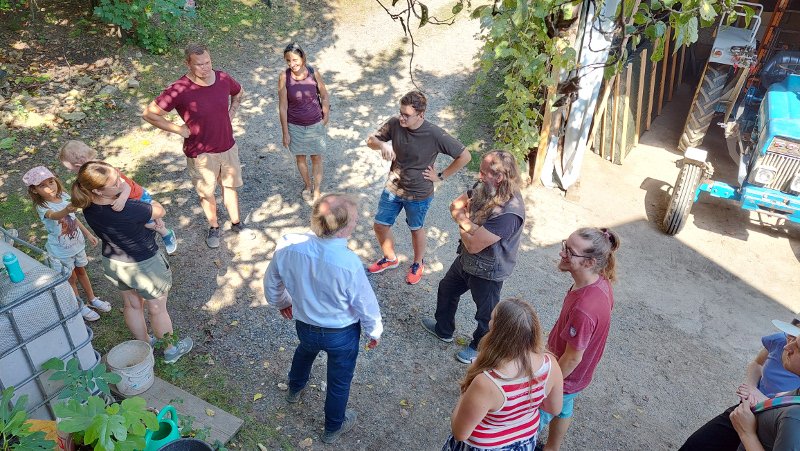 Was auf kleiner Fläche landwirtschaftlich alles möglich ist, erfuhren Teilnehmer*innen des Bauernhofspaziergangs am 22. August auf dem Betrieb unseres Biodiversitätsbotschafters Jakob Loidolt im nördlichen Waldviertel. Gemeinsam mit seinen Eltern und seinen Geschwistern bewirtschaftet Jakob einen rund 16 ha großen Ackerbaubetrieb. Trotz kleiner Betriebsgröße schaffen es die Loidolts, eine bemerkenswerte Vielfalt an Erdäpfeln, Getreide, Gemüse und Obst anzubauen. Das bedarf einiges an Logistik bei Anbau, Ernte und Lagerung. Davon konnten sich die Teilnehmer*innen vor Ort ein Bild machen.