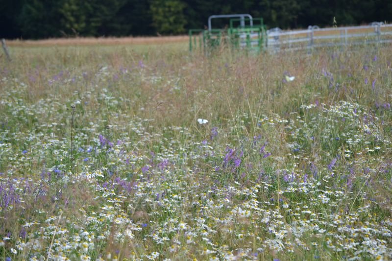 Seit über 17 Jahren setzt Riß auf Altgrasstreifen. Er ist überzeugt, dass Altgrasstreifen nicht nur positiven Effekt auf die Natur, sondern auch auf den Ertrag der Flächen haben. Der gelernte Bodenpraktiker führt das auf die krümelige und lockere Bodenstruktur zurück, die bei der extensiven Bewirtschaftung entsteht. Die Böden verfügen über bessere Wasserspeicherkapazität und können selbst bei trockenem Wetter vergleichsweise mehr Ertrag bringen. Dass von einer nachhaltigen Bewirtschaftung Natur und Landwirtschaft gleichermaßen profitieren, macht sich Helmut auch bei der Anlage von Hecken zu Nutze: Für Helmut liefern sie nicht nur wertvollen Lebensraum für Vögel und Insekten, sondern fungieren auch als Schattenspender und Windschutz für seine weidenden Rinder. Das Wohl seiner Tiere steht für den innovativen Landwirt auch bei seinem Weidesystem im Vordergrund: Den Rindern steht ausreichend Fläche zur Verfügung und zudem Weidebereiche unterschiedlicher Vegetationshöhe. Damit sind die Rinder optimal versorgt, denn sie weiden selektiv, je nachdem, was sie brauchen und ob die Pflanze schon im richtigen Stadium ist.