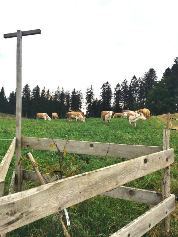 Claudia und Philipp Kerschbaumer führen ihren Bauernhof im Nebenerwerb: Claudia ist Regionalentwicklerin, Philipp AHS-Lehrer. Weidegänse schnattern schon seit dem Jahr 2013 auf ihren Weiden, mittlerweile halten sie jährlich rund 220 VomJoglGansl. Mit der vollständigen Übernahme des Betriebes im Jahr 2021 haben Philipp und Claudia Kerschbaumer auf Mutterkuh-Haltung und biologische Wirtschaftsweise umgestellt. Sie sind besonders stolz, dass sie der ältesten und seltensten Rinderrasse Österreichs ein Zuhause bieten können, nämlich den Ennstaler Bergschecken. Alles, was ihre Tiere benötigen (Stroh für Einstreu, Getreide für die Gänse, Futter für die Rinder in Form von Heu und Silage) wird selbst am Hof produziert. Wiesen und Weiden werden extensiv bewirtschaftet und bieten daher Lebensraum für zahlreiche Wildtiere. Über 3 ha werden im Rahmen der ÖPUL Naturschutz-Maßnahme und somit besonders schonend bewirtschaftet. Zusätzlich zum bestehenden Baumbestand wurden entlang der Feldraine neue Bäume gepflanzt. Eine Mehrnutzenhecke mit alten Obstsorten wurde um die AgriPV-Anlage angelegt.