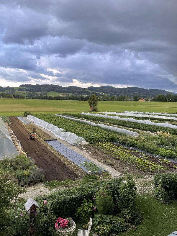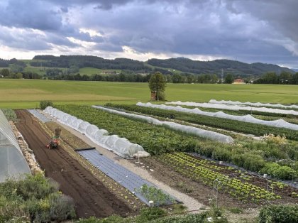 Der Bio-Gemüsebau bedeutet viel Handarbeit und ist arbeits- sowie zeitintensiv. Umso wichtiger ist ein sorgfältiger Umgang mit Boden und Pflanzen. Ein belebter und gesunder Boden bildet die Grundlage des Betriebs. Durch selbst produzierten Kompost, Humusaufbau und geschlossene Kreisläufe werden Pflanzenreste, Heckenmaterial und andere organische Stoffe wieder in den Boden zurückgeführt. Rund um die Gemüseflächen wurden Hecken, Randgehölze und ein- und mehrjährige Blumen- und Staudenbeete angelegt. Sträucher wie Holler sowie Bäume, etwa stickstoffbindende Erlen, schaffen zusätzliche Strukturen und Lebensräume. Auch Totholz bleibt bewusst liegen, um Insekten und Kleintieren Lebensraum zu bieten. Da sein Vater Imker ist, befinden sich am Hof rund 13 Ertragsvölker. Diese bestäuben nicht nur die Gemüsepflanzen, sondern profitieren auch von den zahlreichen Frühblühern wie Kornelkirschen und Salweiden rund um die Gemüsebeete. Gleichzeitig liefern sie hochwertigen Bio-Blüten- und Waldhonig, der ebenfalls im Hofladen erhältlich ist.