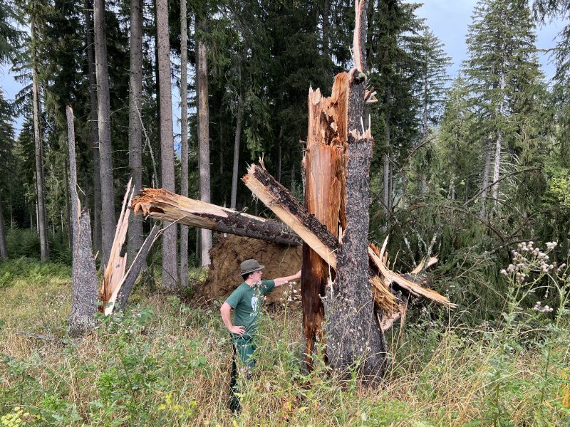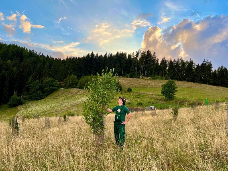 Georg Kanz is particularly keen to bring diversity to the surface. This creates visually appealing, diverse spaces of structural and species diversity from monotonous, uniform areas. As a qualified forester, he started in the forest on his parents' farm and has been converting the spruce monoculture into a species-rich forest stand for 15 years. When he took over the farm in 2023, diversity was increasingly introduced to the grassland areas: brushwood piles were created, hedges and fruit trees were planted and old grassland was allowed to grow - a diversity that was recognised by the successful breeding of whinchats in 2023, among other things.