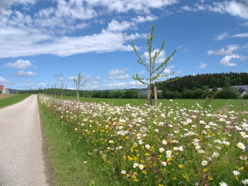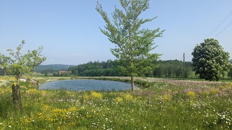 Johann Schauer makes sure that, in addition to the cultivated meadows and fields, there is also ample space for nature on his farm. A pond has been created, hedges and trees planted, and wildflower meadows sown. These efforts are already showing results: Johann Schauer now observes significantly more insects and pollinators in his meadows. The organic farmer is also committed to promoting biodiversity in his community. As a member of the local council, he has successfully campaigned for the town to become a bee-friendly community. He is working to ensure that there are more wildflower meadows in and around the town. He has also sown regional wildflower seeds on public land and planted native shrubs with schoolchildren. Creating diverse habitats and raising awareness of the importance of a healthy environment are not only important to him.
