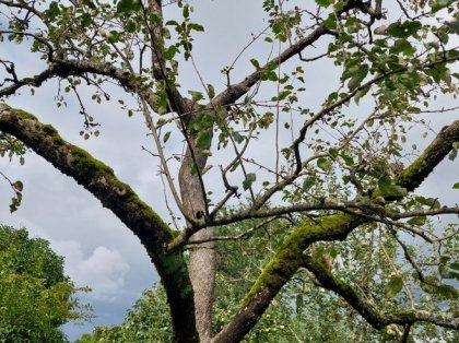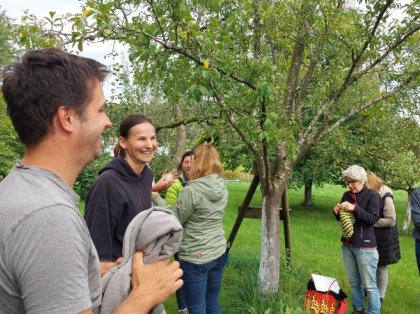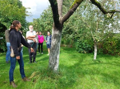 „Oft wird ein toter Baum erst richtig lebendig“, bringt es Hans Neumayer auf den Punkt. Auch im Streuobstgarten der Dörners wird das sichtbar: Im Totholz eines alten Baumes hat ein Hornissenvolk ihr Nest angelegt, in einer kleinen Asthöhle hat ein Starenpaar erfolgreich gebrütet und im morschen unteren Stammbereich, versteckt hinter höherem Gras hat ein Igel sein Quartier bezogen.