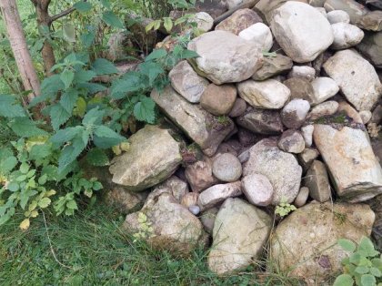 Steine, die bei Grabungsarbeiten im Zuge der Brunnenerneuerung anfielen, wurden kurzerhand zu einem Steinhaufen geschlichtet und bieten wertvolle Versteckmöglichkeiten für Ringelnatter, Mauswiesel oder Igel.